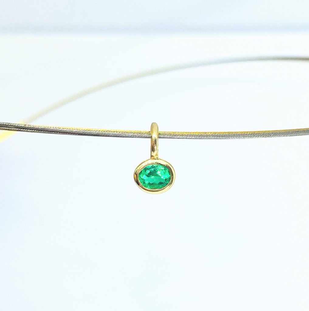 Klein aber fein! Wunderschöner Smaragdanhänger in edlem 750er Gelbgold. Im Mittelpunkt steht ein oval facettierter Smaragd aus Kolumbien, dessen intensives Grün und feine Brillanz jedes Herz höherschlagen lassen. Ein zeitloses Accessoire, das sowohl im Alltag als auch zu besonderen Anlässen getragen werden kann und pure Eleganz ausstrahlt.