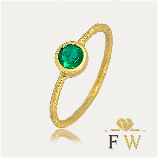 Einzigartiger Smaragd-Ring kunstvoll gefertigt und versehen mit einer hochwertigen 750er Gold. Im Zentrum des Designs steht ein intensiv grüner oval Smaragd aus Kolumbien, dessen sanft, polierte Oberfläche die natürliche Schönheit und Tiefe des Edelsteins besonders zur Geltung bringt. Die feine Goldfassung hebt den Smaragd elegant hervor.